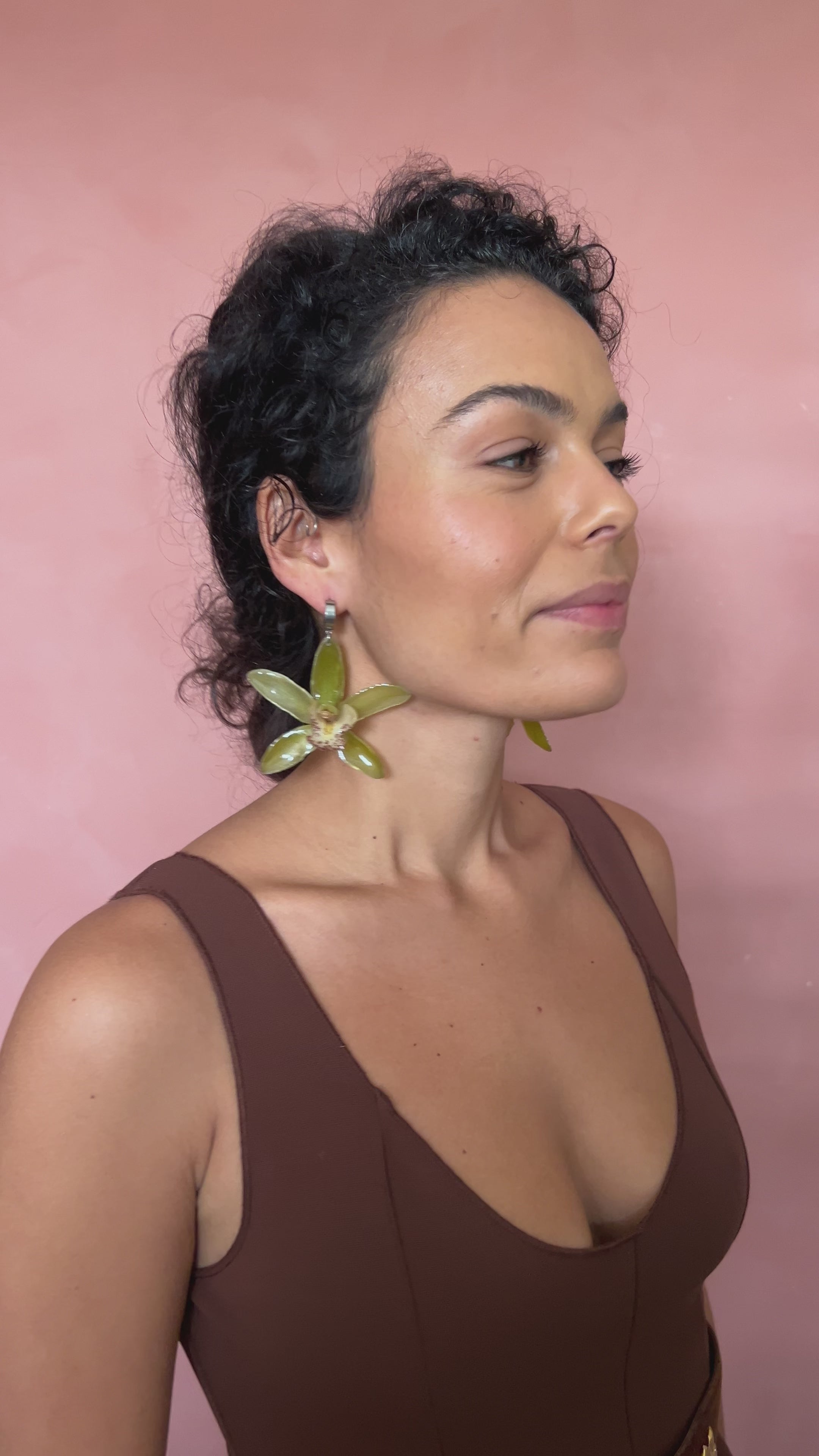 Dangling orchid earring pair
