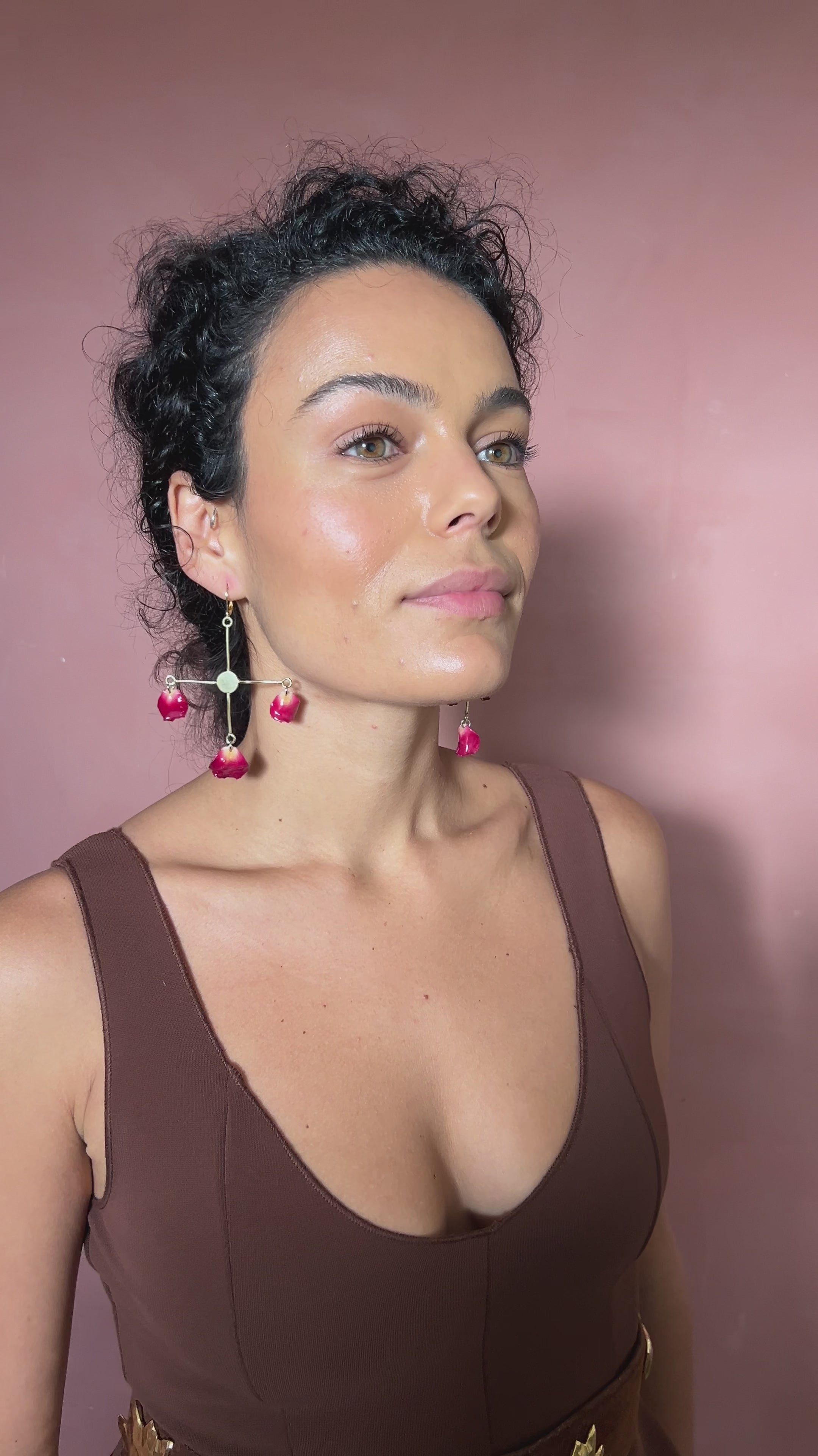 Pink rose stacked dangle earrings